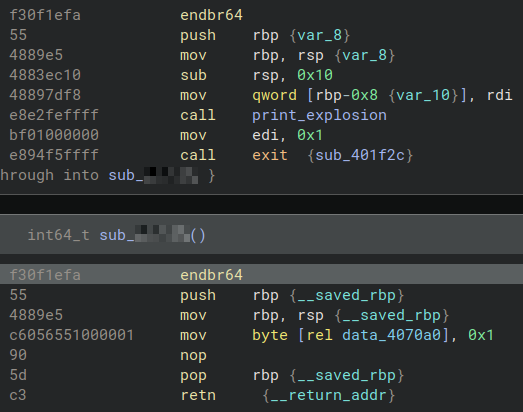 analyzed by binaryninja, one of the functions gets combined into the previous