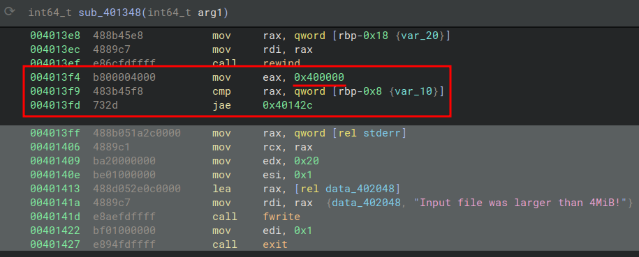 message. 0x400000 is the default base address that binaryninja assigns to our