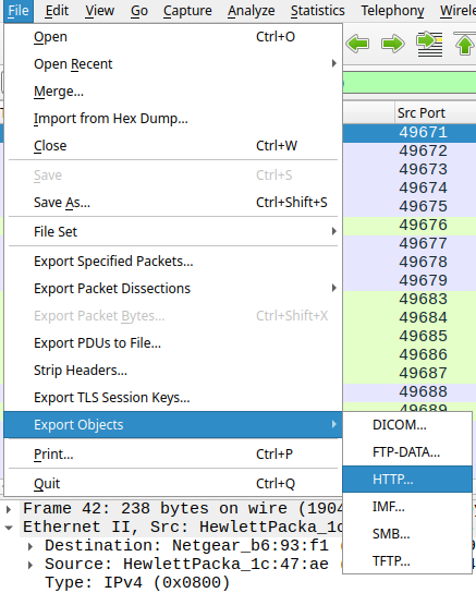 Exporting Artifact from Wireshark