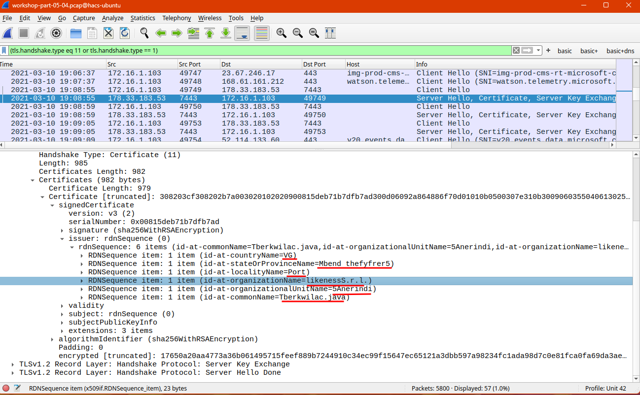 In this case thought, we’re going to analyze the packets to look for malicious traffic by finding non-standard looking TLS certificates.