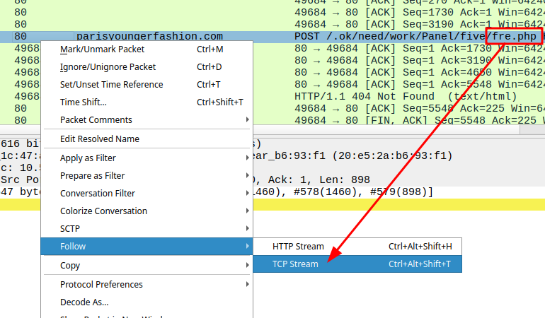 Find an unencrypted HTTP packet going to www.google.com and follow the TCP