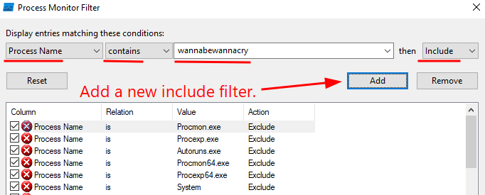 Setup wannacry filter
