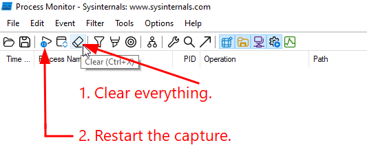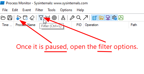 Start procmon and pause capture