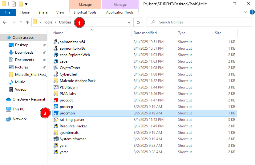 Start by running the procmon program, found in the Utilities section of the