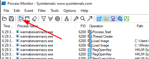 After the malware runs, make sure to stop the procmon capture to preserve