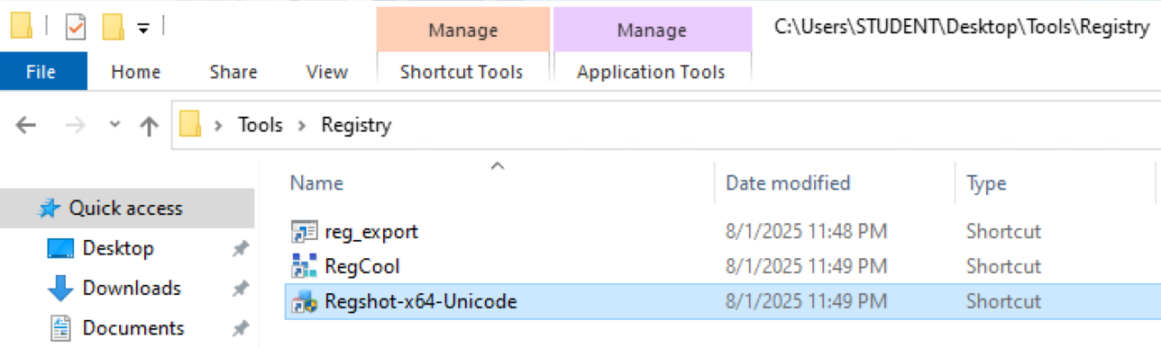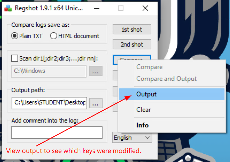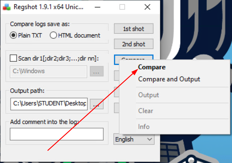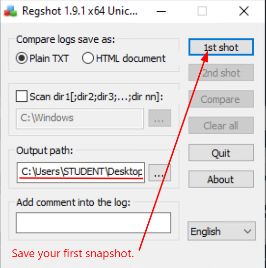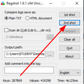 Follow the screenshots to use regshot to compare the Windows registry at two
