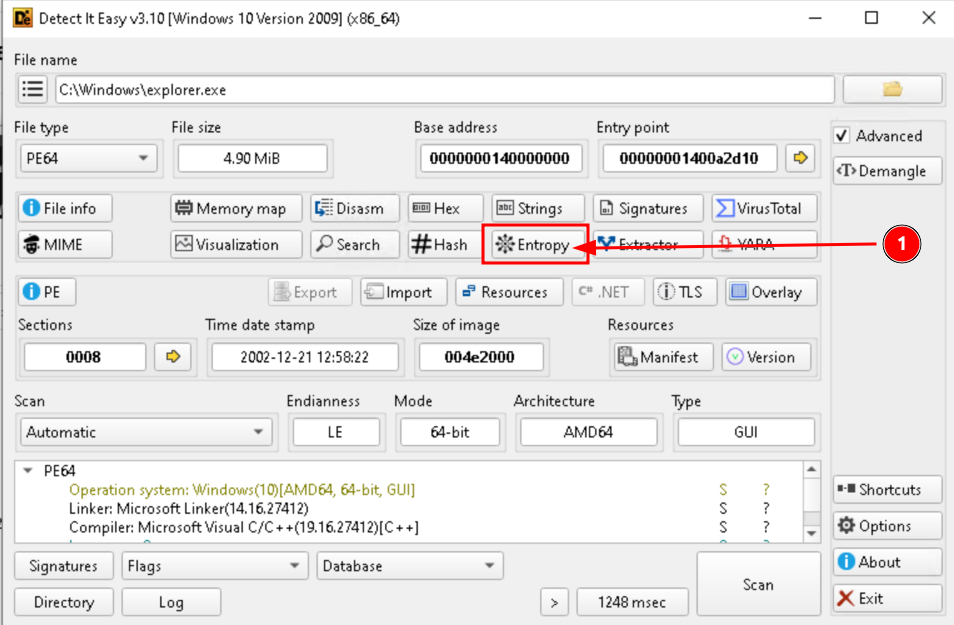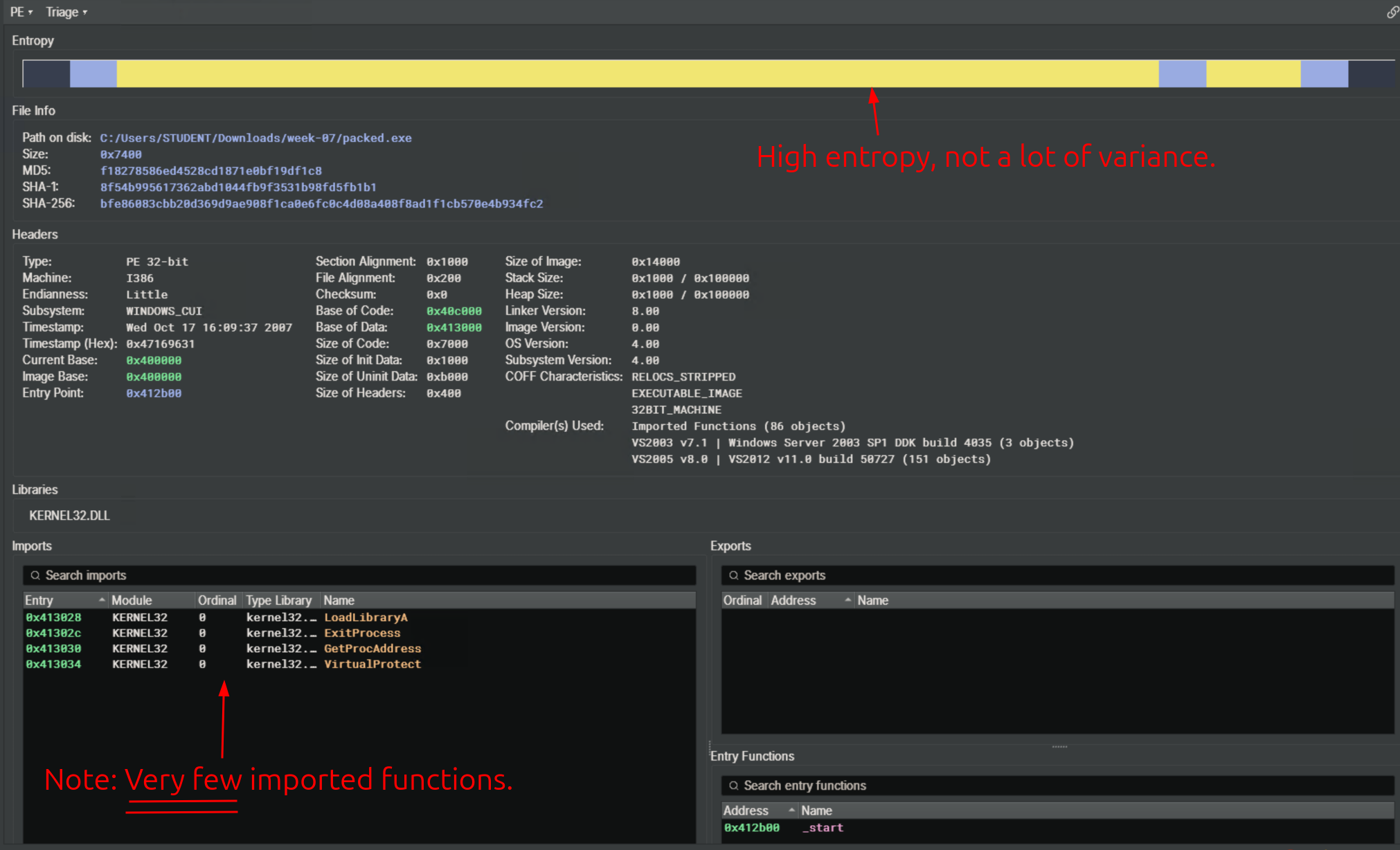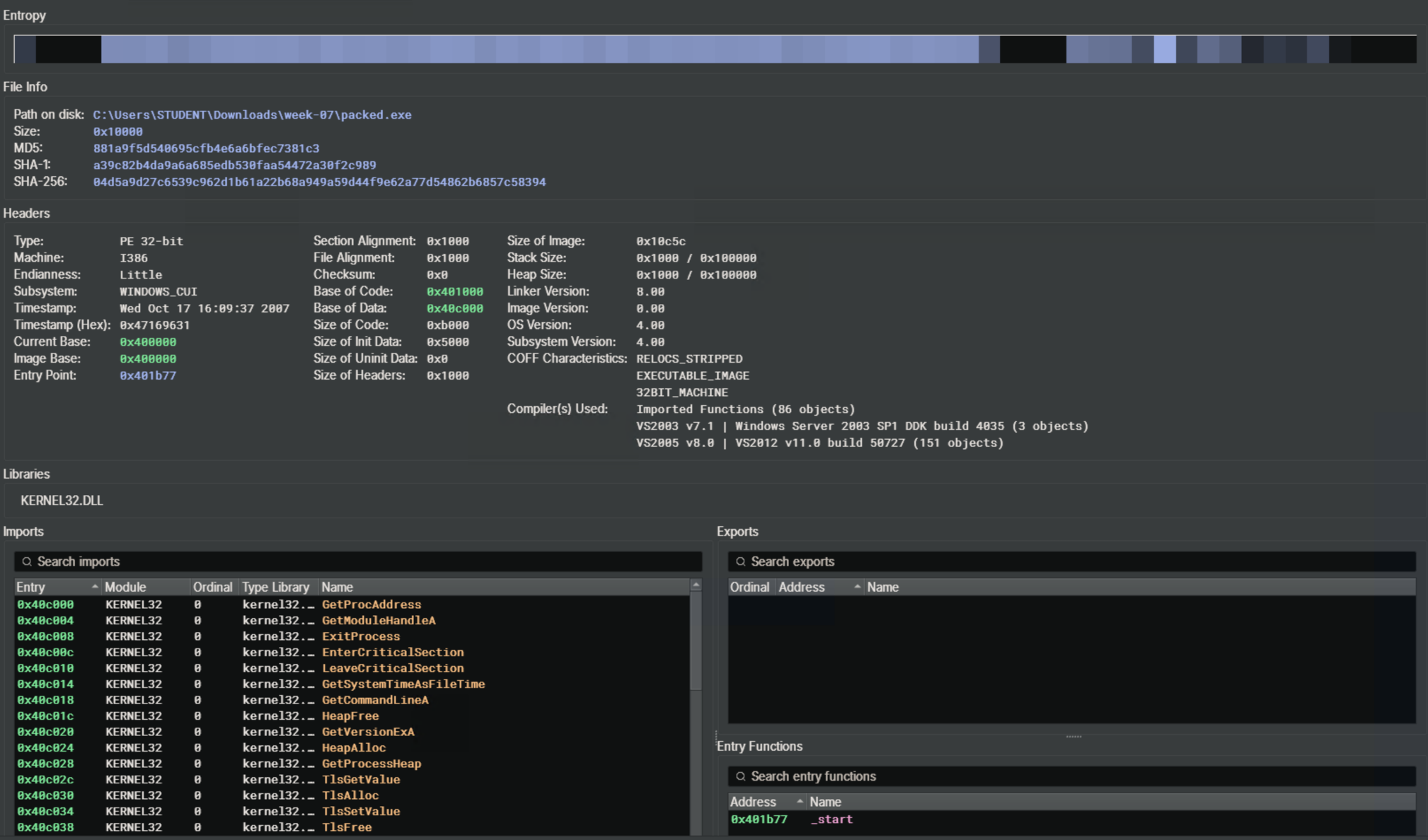 entropyanalysis to decide if a program is packed - Practice using reverse engineering tools