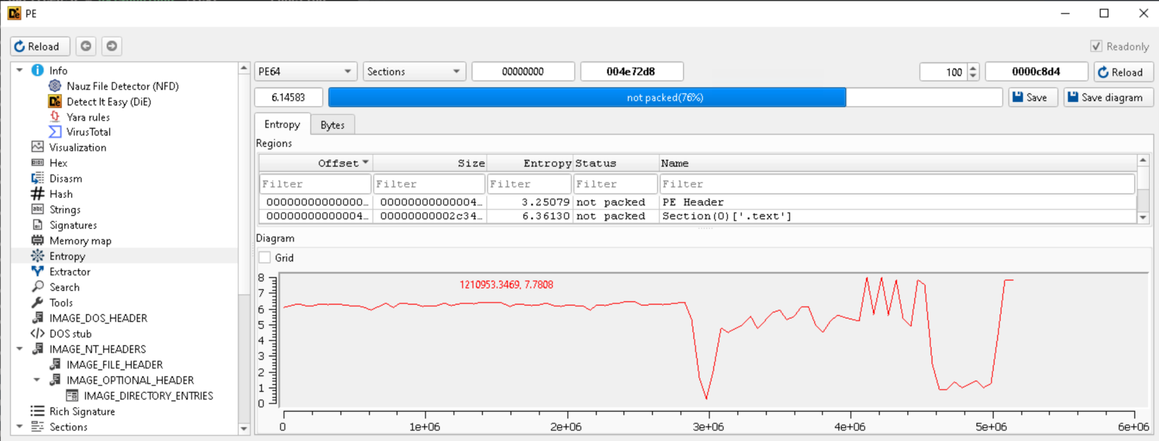 What is the overall entropy for this file? Doesdiethink this program is packed/obfuscated?