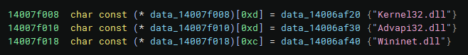 What libraries (.dllfiles) is the program using to look up functions? (Hint: There are three names)