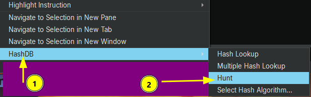 Huntfor the hash algorithm. To do this you’ll right click on a hash value and then use the `Hunt feature to find an algorithm that matches that hash value.