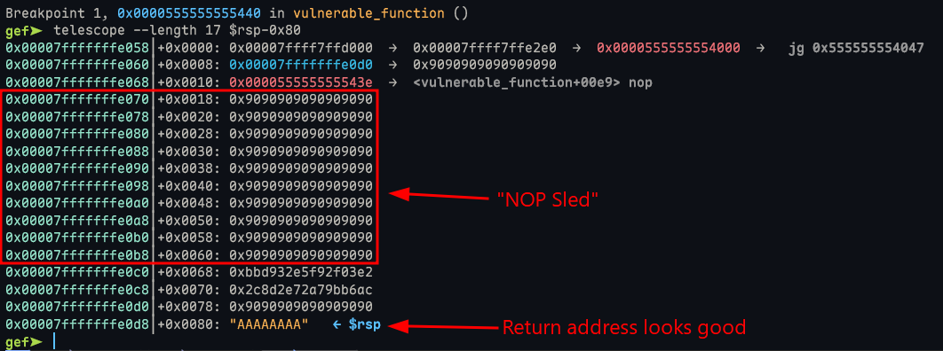a memory fault. If you run into this issue, try adjusting your NOP sled
